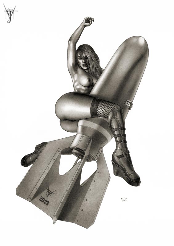 Una segunda versión (vestida) fue creada a partir de este original, dibujando las vestimentas en un nuevo papel aparte.